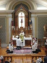 At a Sung Mass, which is the usual service on Sundays and Solemnities, we sing appropriate hymns and psalms, chant all of the proper parts and the Ordinary, and sing all the responses. With a brief sermon, Sung Mass usually lasts about 90 minutes.